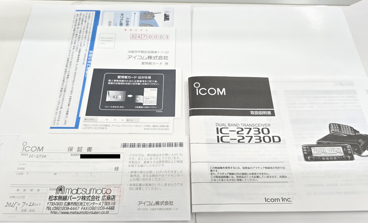 当店にて通電および送受信の確認を実施。
